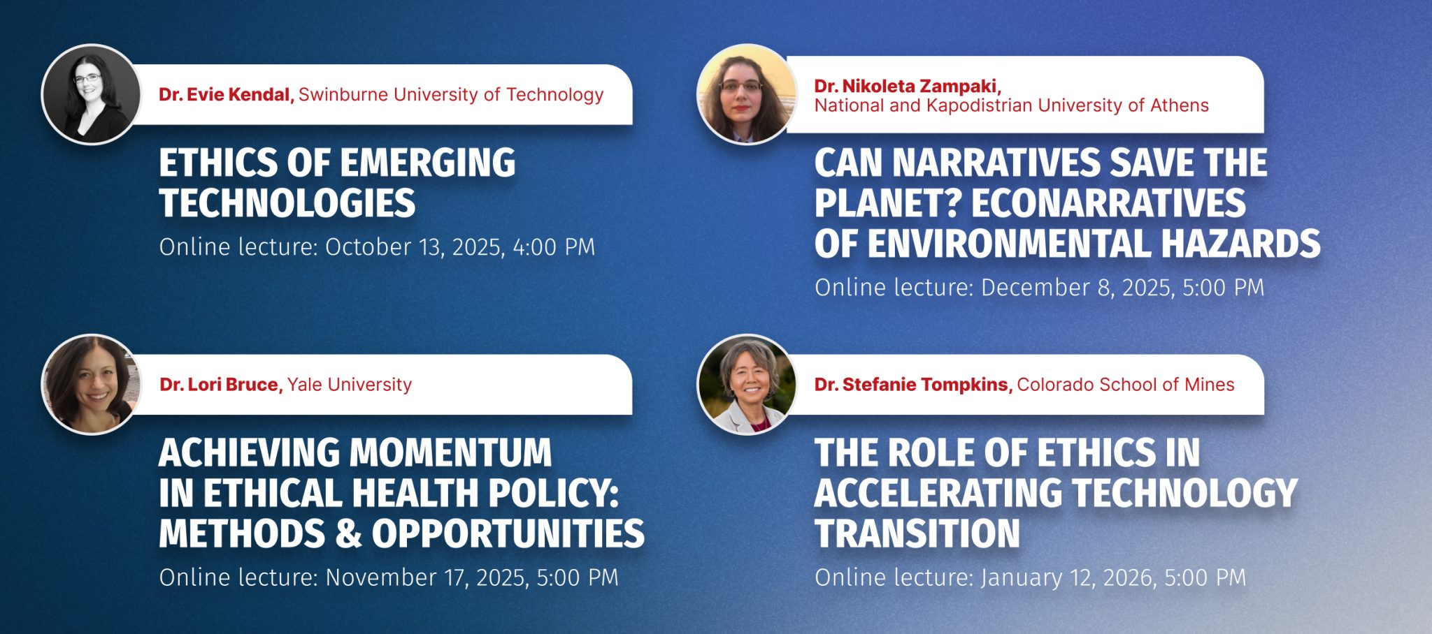 „The Role of Ethics in Accelerating Technology Transition” – Dr Stefanie Tompkins, Provost Colorado School of Mines (online 12.01.2026).