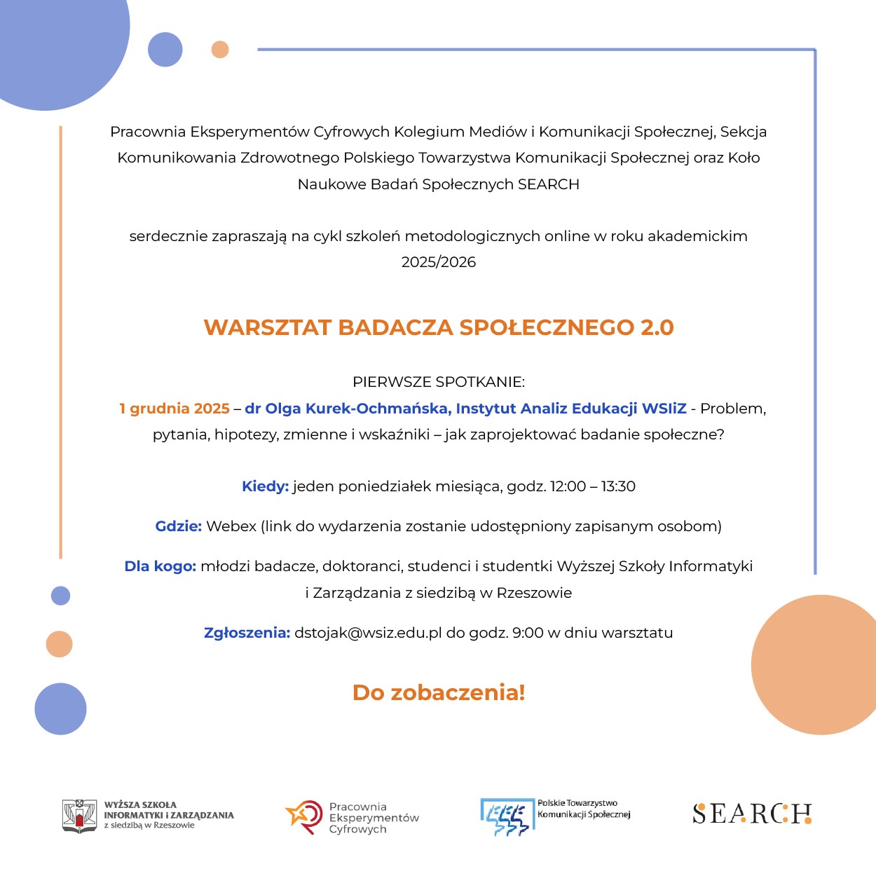 December 1, 2025 – Olga Kurek – Ochmańska, Ph. D. Institute of Education Analyses – Problem, questions, hypotheses, variables and indicators – how to design social research ?