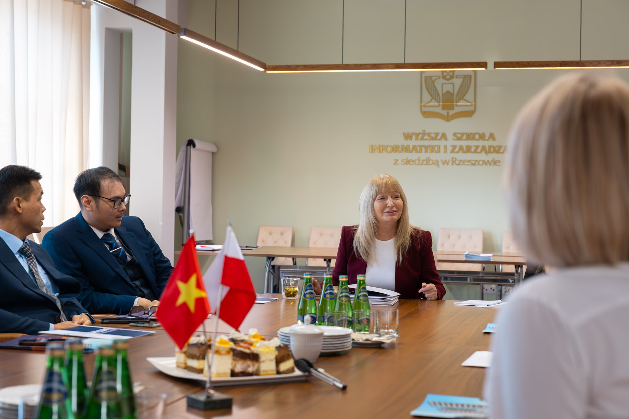 A delegation from the University of Transport Technology (UTT) in Hanoi met with the authorities and representatives of the University of Information Technology and Management (UITM) in Rzeszów. UTT and UITM have been cooperating for over five years. During the visit, the two sides discussed the principles of further cooperation, focusing mainly on a new double degree programme and joint research initiatives. The UTT delegation also had an opportunity to explore the city of Rzeszów.