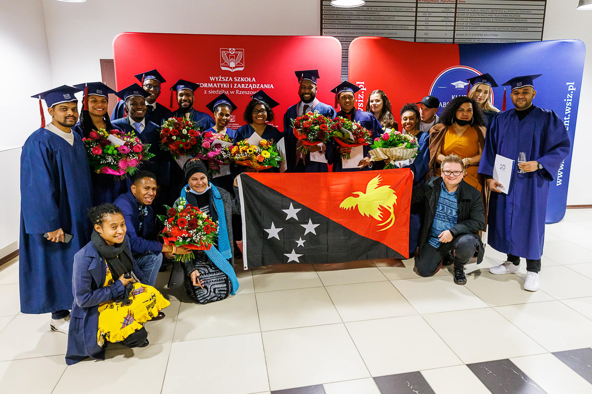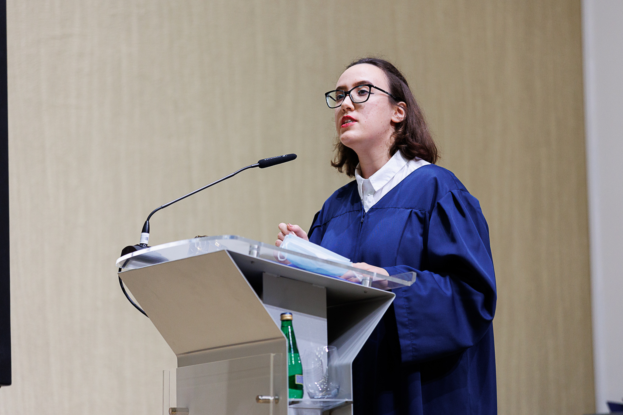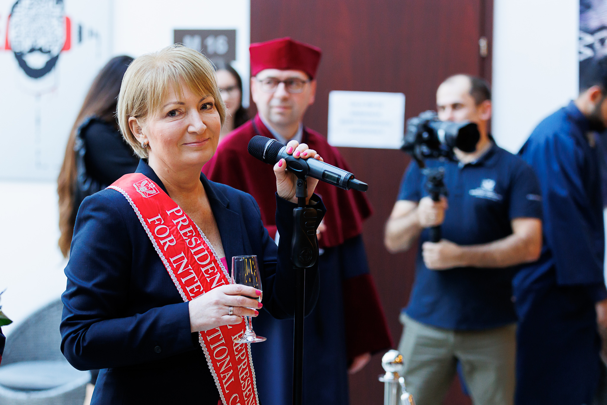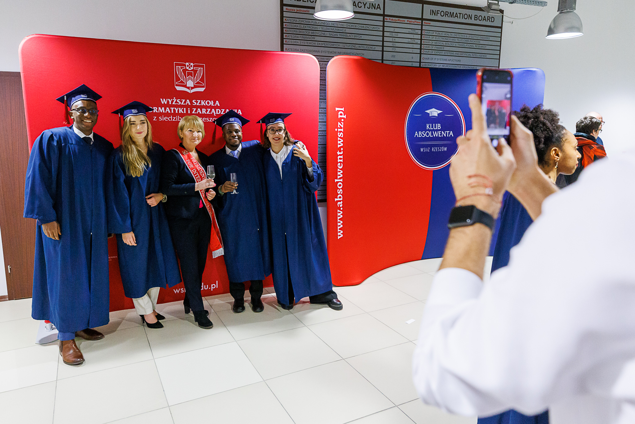 The artistic part of this year’s Graduation was a performance by Alicja Wróbel, a student of Psychology in Management, winner of the international competition „UITM’s got Talent” in 2019, awarded, among others, in the national competition „Wygraj sukces”. During Graduation, there was a traditional Mexican wave, joint commemorative photo sessions and biretta tossing. The official part was followed by a Toast with the University Authorities and refreshments provided by the UITM Alumni Club.