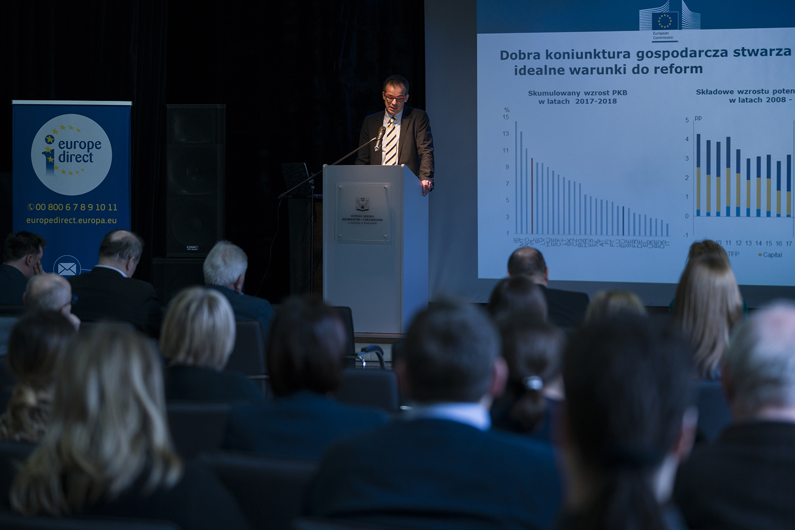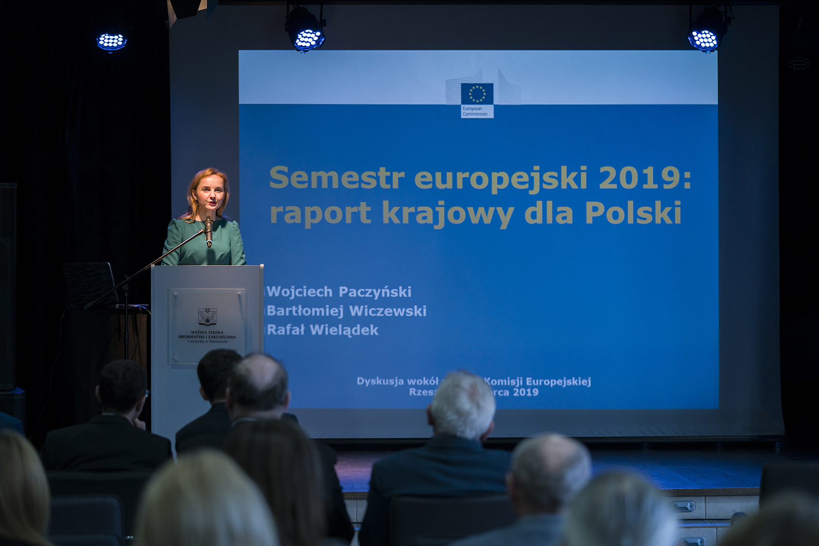 Rzeszow, alongside with Warsaw, Wroclaw and Katowice, was one of the Polish cities in which the European Commission representatives discussed a report on Polish economy entitled „National report – Poland 2019” published as part of the European Semester. The organizer of the event was Europe Direct in Rzeszow – the European Information Point with its seat at the University of Information Technology and Management in Rzeszow.