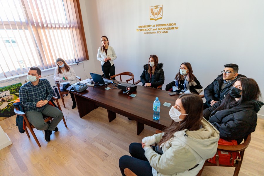 The participants of the Erasmus+ exchange programme were welcomed at the University of Information Technology and Management by Ms Anetta Bała – University ECTS Coordinator. The most important information about the UITM was provided by Ms Sylwia Śnieżek – Erasmus+ Institutional Coordinator and Ms Mariia Kravets from the International Students Support Office, who answered questions related to the study process at UITM and discussed issues, such as public transport, costs of living and entertainment.